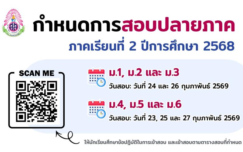 กำหนดการสอบปลายภาค ภาคเรียนที่ 2 ปีการศึกษา 2568 ร...
